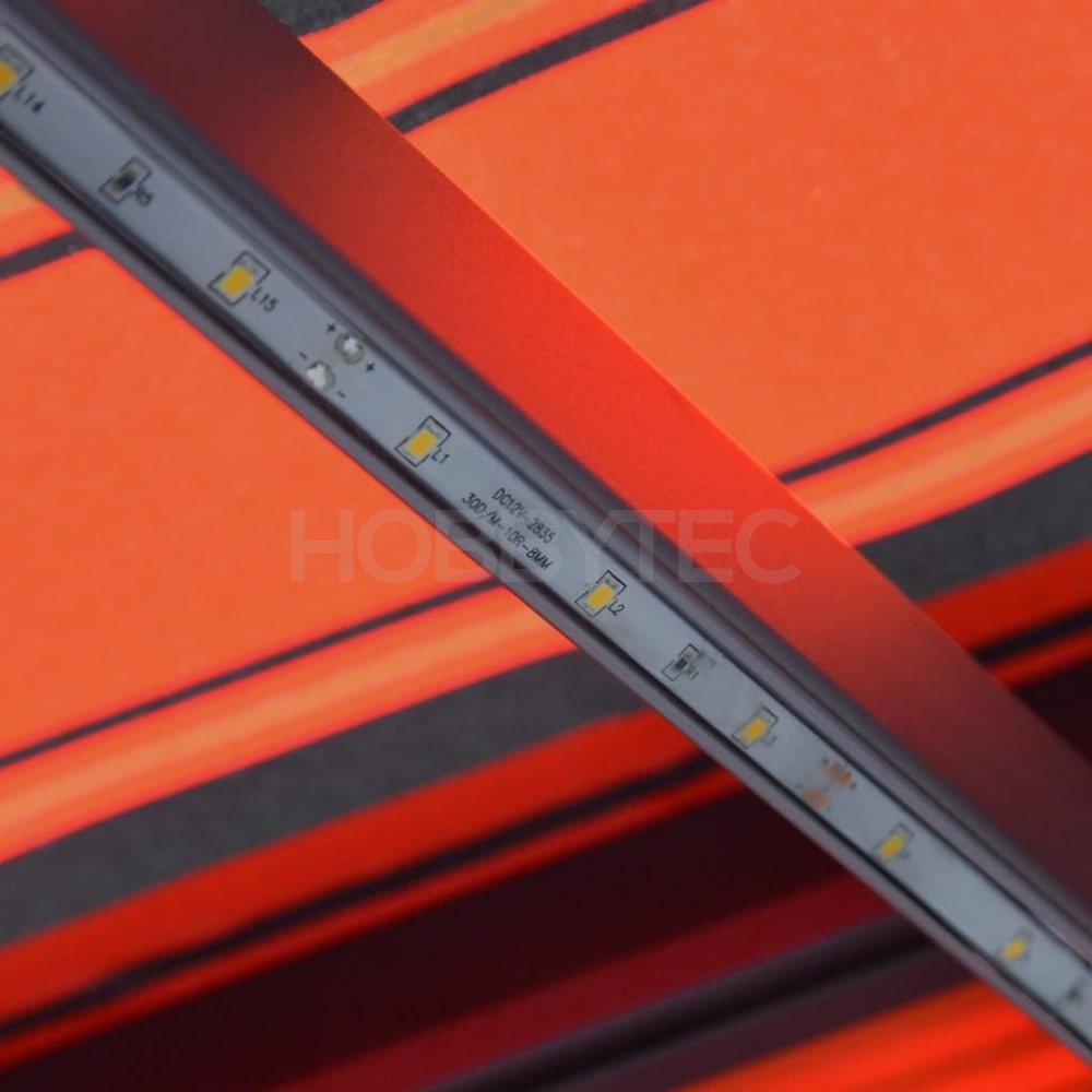 Zahradní markýza má hliníkový rám s práškovým nástřikem, který nerezaví, je lehký, ale přitom tvoří velice pevnou konstrukci. Do jisté míry dokáže odolávat i větru. Je vybavená senzorem větru, který dokáže markýzu automaticky zavřít, jestliže je venku příliš větrno. Zatahovací stříška je zhotovená z vysokohustotního polyesteru potaženého vrstvou PU, výborně tedy vzdoruje vodě i UV záření a nebledne. Markýzu lze snadno roztahovat a zatahovat pomocí dlouhé ruční kliky. Výšku a úhel stříšky si můžete nastavit dle svých potřeb, aby vám vždy poskytovala maximální ochranu. Na rameni markýzy najdete uchycená také LED světla, která vám v noci zajistí energeticky úsporné osvětlení.