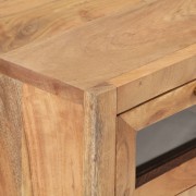 Tento příborník je vyrobený z masivního akáciového dřeva, je tedy velice stabilní a odolný. Zručné zpracování a překrásná kresba dřeva dávají každému kusu nábytku jedinečný charakter, kterým se lehce liší od všech ostatních. Úložná skříňka má 2 police a 2 zásuvky a nabízí spoustu místa pro přehledné uspořádání či vystavení nejrůznějších věcí. Ocelová základna je navíc pevná a bytelná.