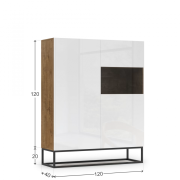 Vitrína je vyrobena z MDF desky, která se vyznačuje vysokou odolností. Pro milovníky minimalismu je jistě lahůdkou absence úchytek na otevírání dvířek. Místo toho mají dvířka vestavěné panty s funkcí „push to open“.