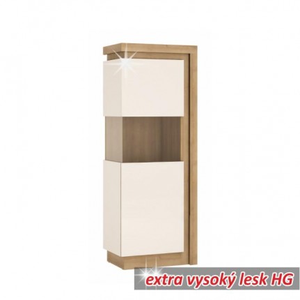 Vitrína LYOV01 je výrazný kousek, který vás okouzlí nejen extra vysokým leskem, ale také množstvím úložného prostoru uvnitř. Vitrína je jednodveřová. Dvířka v bílé barvě jsou s extra vysokým leskem. Má policovou část, která je rozdělena na čtyři úložné prostory.