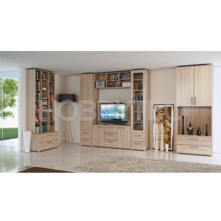 Vitrína je vyrobena z laminované dřevotřísky v barvě dub sonoma.