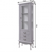 Vitrína VILAR DA4 nabízí úložný prostor v podobě tří šuplíků a polic. Stabilitu jí dodávají dřevěné nohy a disponuje kovovými úchyty.