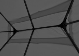 Poznámka: Vezměte prosím na vědomí, že na střeše altánu se může hromadit voda, a to může vést k poškození látky. Obecně doporučujeme demontovat střechu před větším deštěm. Altán se montuje pomocí ocelových šroubů bez práškového nástřiku. Proto za normálních povětrnostních podmínek časem zreziví. Tato rez se však obvykle projeví až při demontáži střechy. Rez lze snadno odstranit pomocí přípravkům k tomu určených.