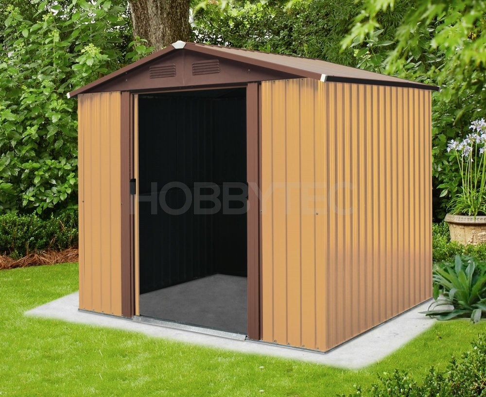 Kvalitní plechový zahradní domek, který osloví zákazníka především velmi příznivým poměrem ceny a kvality. Veškeré stěnové panely jsou potaženy ochranou fólií proti poškrábání (po montáži nutno strhnout).