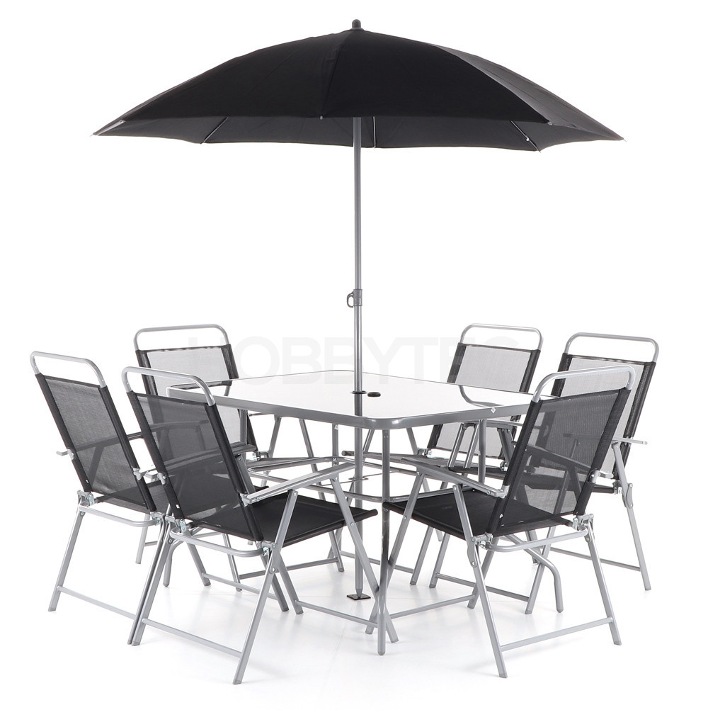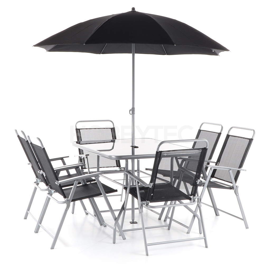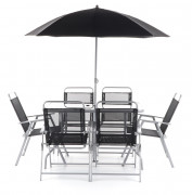 Stolová sestava VeGAS MARIA 6 KOMPLET se skládá ze 6-ti pohodlných skládacich křesel a stolu z hliníkovo-ocelových profilů povrchově dokončené komaxitovou úpravou a slunečníku o průměru 200 cm.
