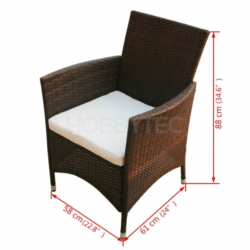 Balení obsahuje 1 stůl se skleněnou deskou, 8 ratanových židlí a 8 odnímatelných polstrů na sedáky, celkem tedy 17 ks. Doporučujeme soupravu v dešti, sněhu a mrazu přikrýt.