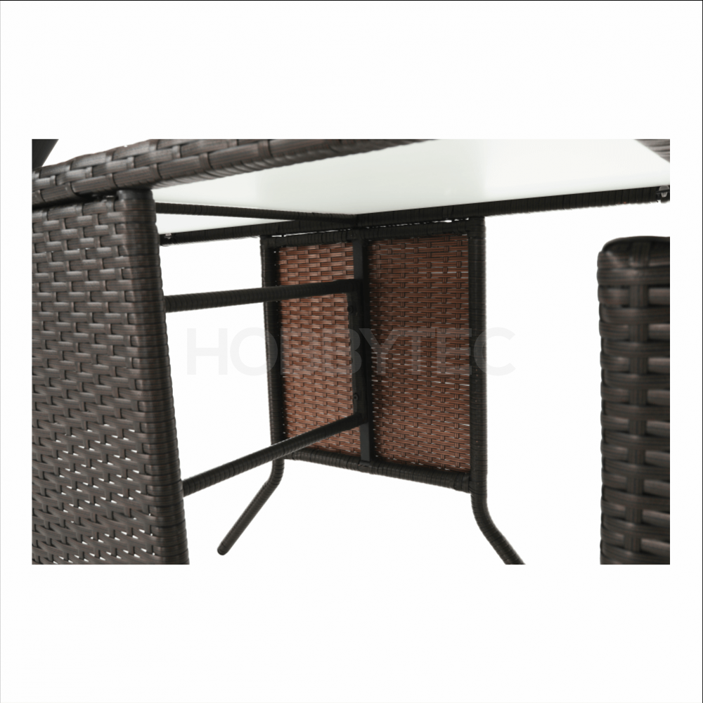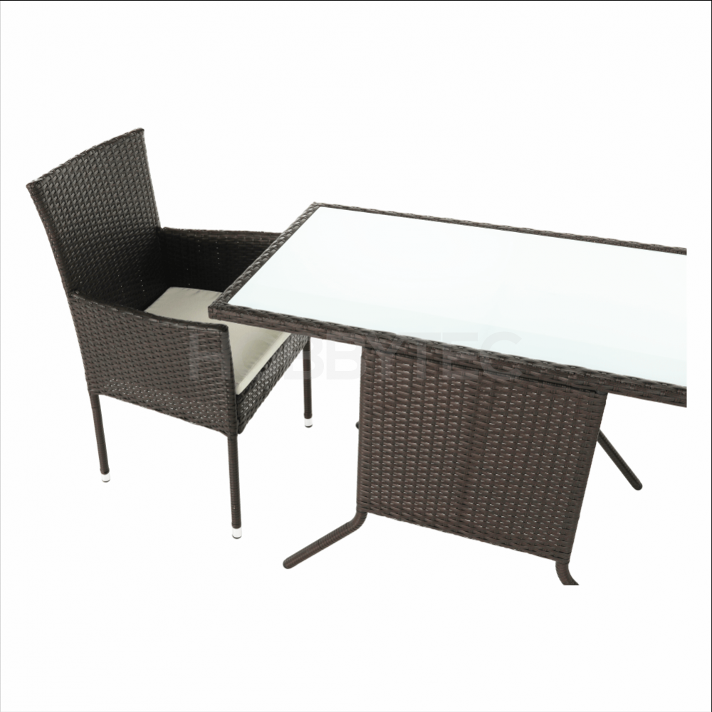 Zahradní set ADARON je vyrobenýz kovové konstrukce a umělého ratanu v barevném provedení: hnědá. Křesílka jsou doplněná světle šedými polštáři, které dodají komfortní pocit. Stůl stojí na čtyřech stabilních nohách a má desku z tvrzeného skla.