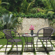 Nábytek je vyrobený z umělého ratanu v barevném provedení: hnědá. Ratan je nenáročný na údržbu, s dlouhou životností a odolností. Deska stolu je vyrobená z tvrzeného skla.