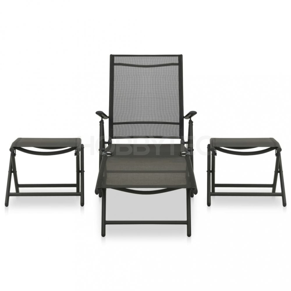 Nábytek má rám z práškově lakovaného hliníku, takže je odolný a vydrží vám sloužit na věky věků. Křeslo má polohovací opěradlo, abyste si mohli vždycky vybrat tu nejpříjemnější pozici. Sedák z prodyšného textilenu je nesmírně pohodlný. Podnožky se vám navíc postarají o maximální komfort. Můžete je také použít jako konferenční stolky, na které si odložíte pití či jídlo, abyste je měli hezky po ruce.