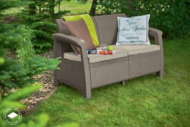 Zahradní 2-místná pohovka CORFU LOVE SEAT je vyrobena z lisovaného plastu v imitaci přírodního ratanu. Nábytek se vyznačuje odolností vůči nepříznivým povětrnostním podmínkám a UV záření. Velkou výhodou je i jednoduchá údržba a snadné sestavení soupravy.