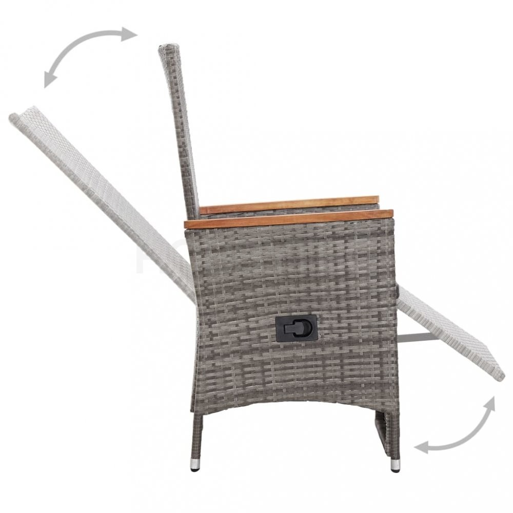 Zahradní křesla jsou vyrobená z PE ratanu, který skvěle vzdoruje vodě i klimatickým vlivům, snadno se proto čistí, hodně toho vydrží a klidně je můžete používat každý den. Práškově lakované ocelové rámy jim přidávají na robustnosti a odolnosti. Područky jsou zhotovené z akáciového dřeva, což je tropické tvrdé dřevo, jež vnese na vaši zahradu rustikální šarm. Nastavovací design a mechanismus plynového pístu umožňují upravovat polohu opěradla i opěrky na nohy. Stisknete-li tlačítko na boku křesla, opěradlo se sklopí a opěrka nohou se současně zvedne, aby se vám pohodlně leželo.