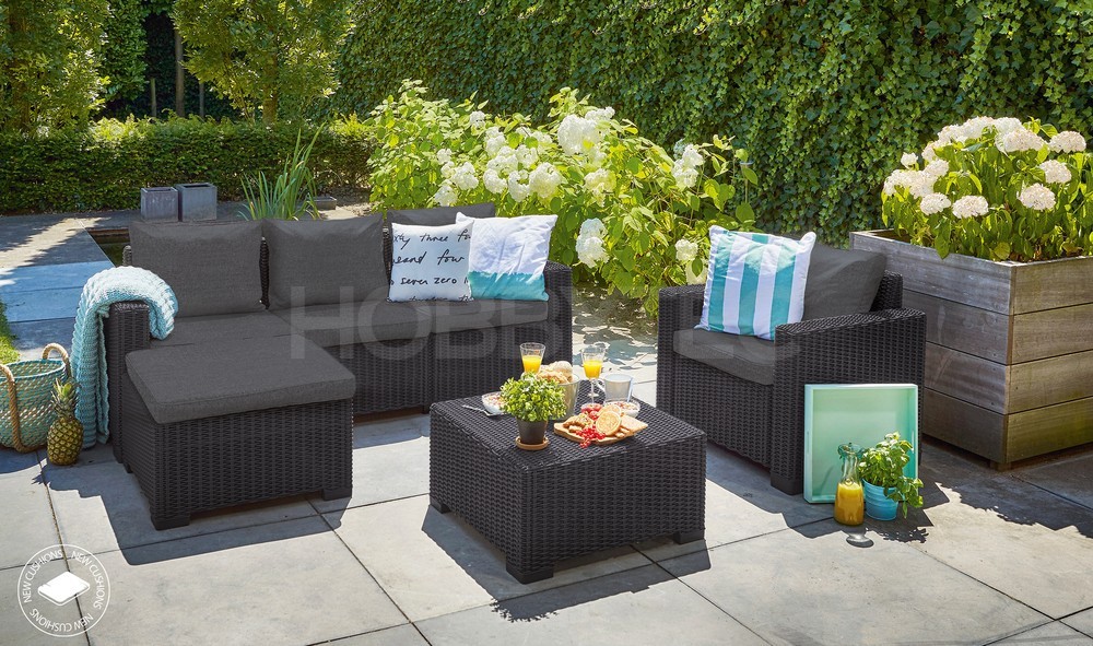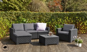 Nábytek má originální povrchovou strukturu napodobující přírodní ratan. Ideální pro pohodlné venkovní posezení na vaší zahradě či terase.