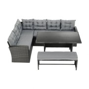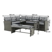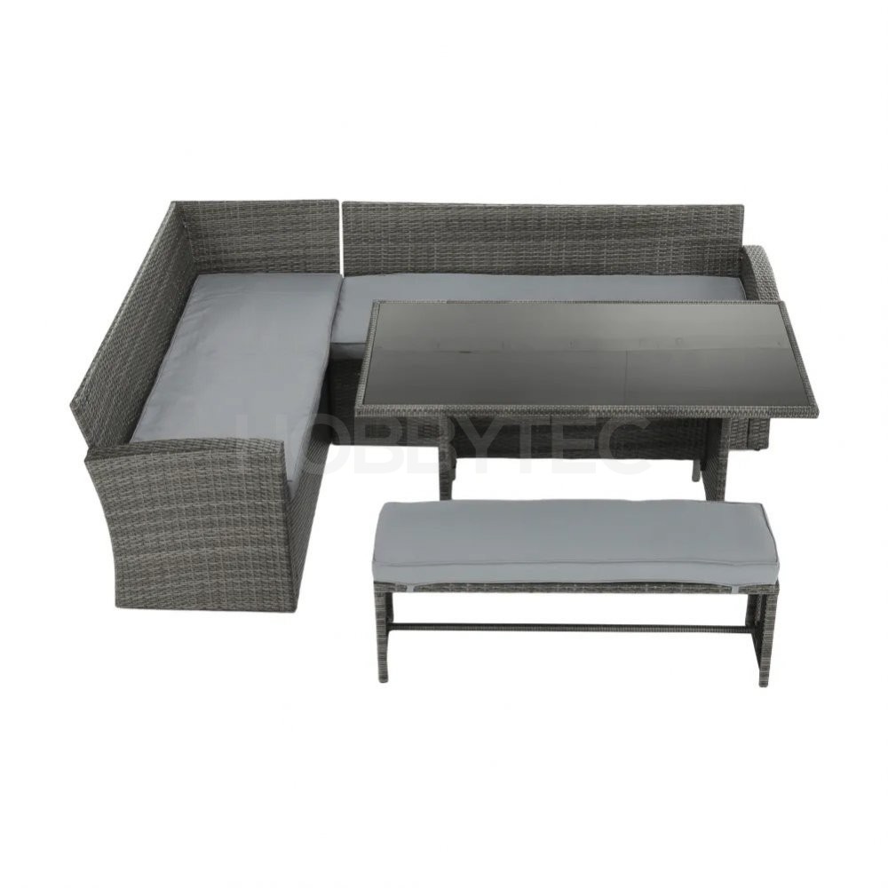 Celý set je vyroben z odolného umělého ratanu v šedé barvě. Konstrukce je zhotovena z pevné oceli, takže set je velmi stabilní.