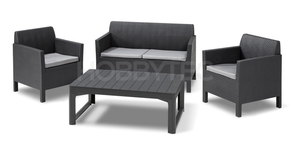 Set se skládá z dvou křesel, sofa (pro dvě osoby) a stolku LYON. Konstrukce multifunkčního stolu LYON umožňuje nastavit dvě varianty výšky stolu: nízká (například pro příjemné posezení u kávy) nebo vysoká (ideální pro stolování s rodinou a přáteli).