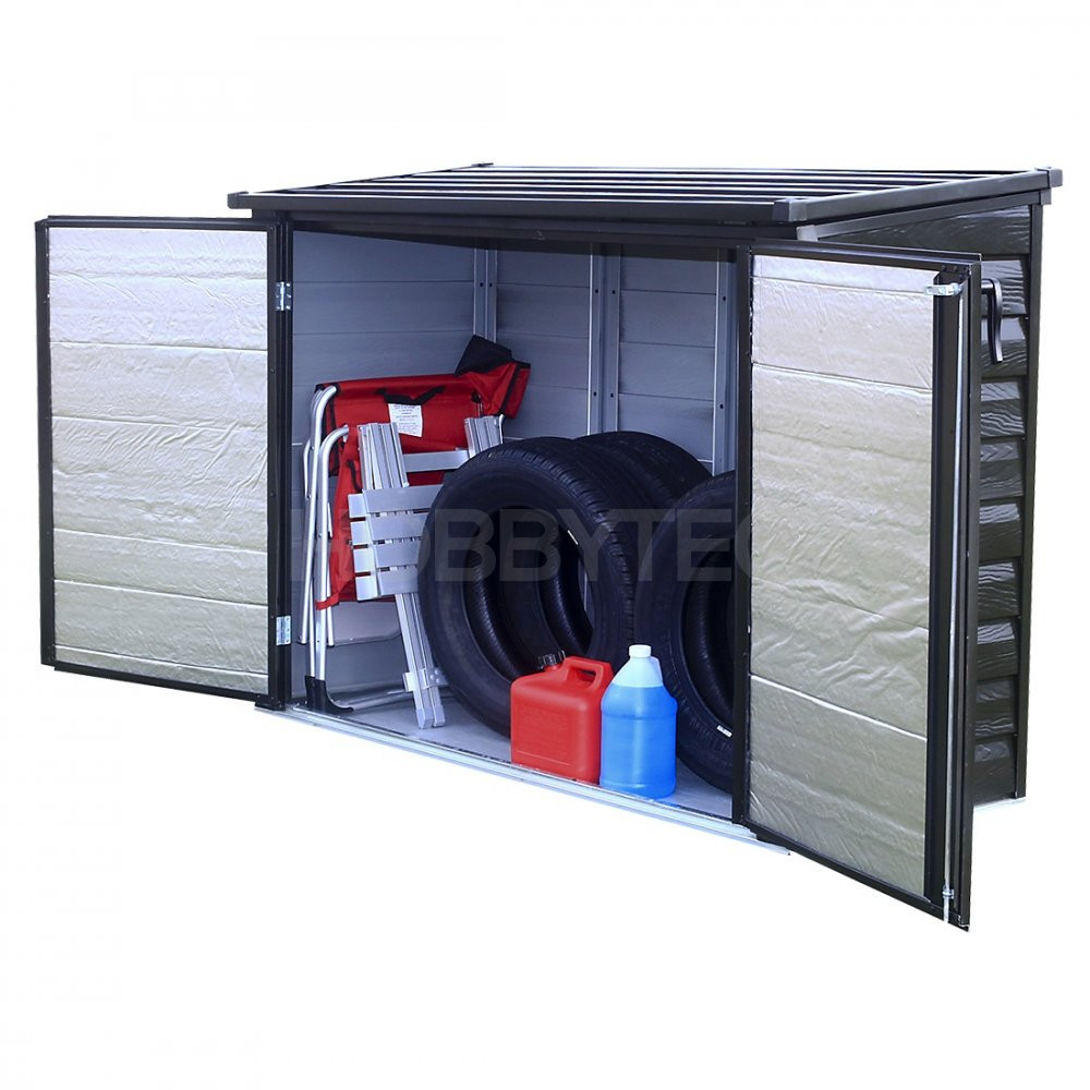 Box má nosnou kovovou konstrukci. Stěny, střecha a dveře jsou vyrobeny z galvanizované oceli. Vysoce kvalitní povrchová úprava - práškově lakováno. Box je vybaven dvojitými zamykatelnými dveřmi na pantech. Samozajišťovací zarážky na víku pohodlně udrží víko v otevřené poloze, což značně usnadňuje jeho obsluhu.