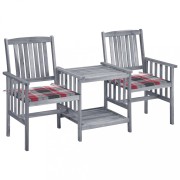 Stůl i židle jsou zhotovené z masivního akáciového dřeva, takže jsou mimořádně stabilní a robustní. Odolná stolní deska a spodní polička se skvěle hodí pro odkládání hrníčků, knih a dalších menších předmětů. Opěradla a područky křesílek vám pak zajistí příjemné posezení a relaxaci. Podušky vám dopřejí větší pohodlí. Každá poduška je opatřená dvěma páry šňůrek pro pevné uchycení.